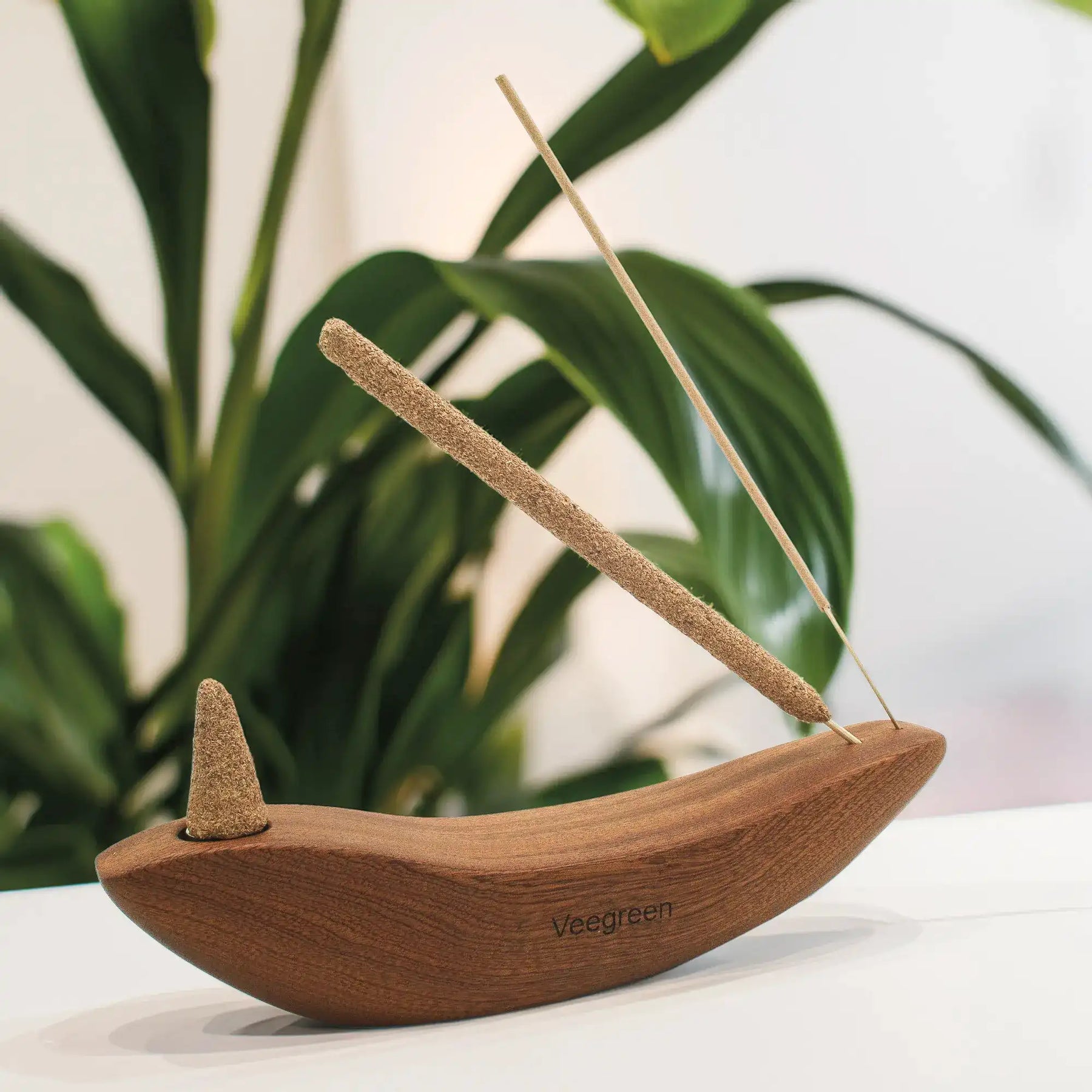 Ajoutez une touche d’élégance naturelle à vos rituels avec notre Porte-Encens Signature en Bois Massif, exclusivité Veegreen.